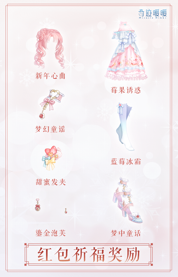 累计祈福八次可领取:鞋子【梦中童话】,累计祈福九次可领取:发型【新年心曲】,